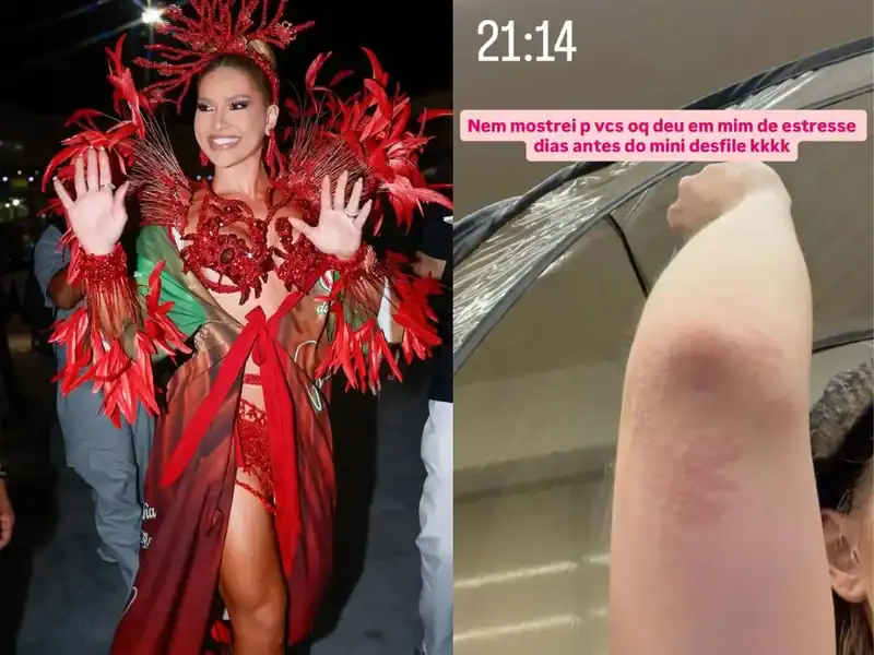 A influenciadora Virginia Fonseca usou suas redes sociais nesta quinta-feira (4/12) para compartilhar com seus seguidores um episódio de reação alérgica que enfrentou dias antes de sua estreia como rainha de bateria da escola de samba Grande Rio. A reação, segundo ela, foi provocada por um alto nível de estresse. Virginia publicou uma imagem mostrando o braço com manchas avermelhadas e irritadas, resultado da crise alérgica. “Nem mostrei para vocês o que deu em mim de estresse dias antes do mini desfile [risos]”, escreveu na legenda.