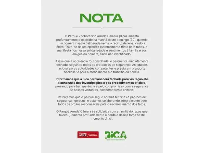 O programa Fantástico, da TV Globo, exibiu neste domingo (7/12) uma reportagem aprofundada sobre a trágica morte de Gerson de Melo Machado, conhecido como “Vaqueirinho”, de 19 anos, que invadiu o recinto de uma leoa no Parque Arruda Câmara, em João Pessoa. Imagens de segurança mostram o jovem entrando no zoológico de madrugada, escalando estruturas e descendo até a jaula pela árvore que apresentava marcas de garras do animal. Mesmo hesitante ao ver a leoa Leona, Gerson continuou avançando, sendo mortalmente atacado.