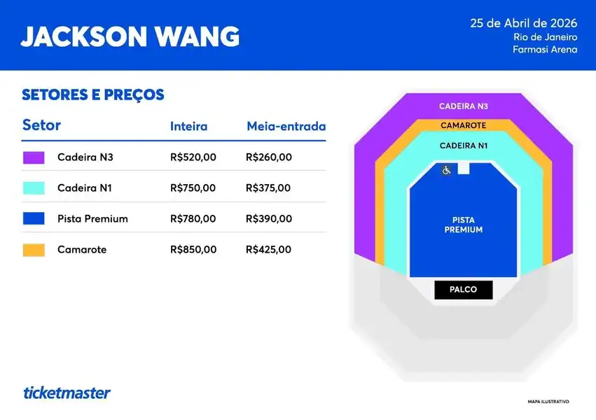 A venda de ingressos começa na próxima sexta-feira, 12 de dezembro. As entradas estarão disponíveis online, pelo site da Ticketmaster, a partir das 10h (horário de Brasília). Já nas bilheterias físicas — localizadas no Shopping Ibirapuera (SP) e no Engenhão (RJ) — as vendas se iniciam às 11h.