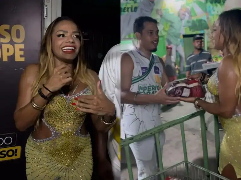 Quitéria, que também é atriz, psicóloga, modelo e dançarina, fez questão de participar pessoalmente da entrega dos alimentos, demonstrando seu compromisso com a comunidade verde e branca. Desde que reassumiu o posto de rainha de bateria, ela tem mantido essa tradição como forma de valorização dos membros da escola.