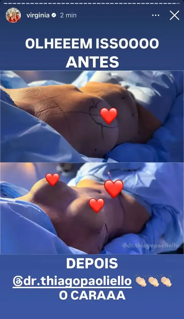Nos stories do Instagram, Virginia Fonseca compartilhou a reportagem exclusiva do portal LeoDias e fez questão de destacar o profissionalismo da equipe. Ela ressaltou a segurança e o conforto oferecidos durante todo o processo, indicando que a combinação de experiência e tecnologia utilizada por Dr. Thiago Paoliello e Dra. Mariana Genelhu foi fundamental para o sucesso das cirurgias.