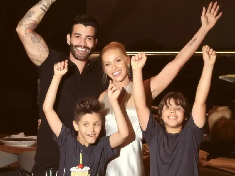 “Nossa, vocês detonaram minha skin (pele)”, brincou Suita na publicação original. Nas fotos, ela aparece caminhando ao lado dos filhos, Samuel e Gabriel, além do marido Gusttavo Lima.