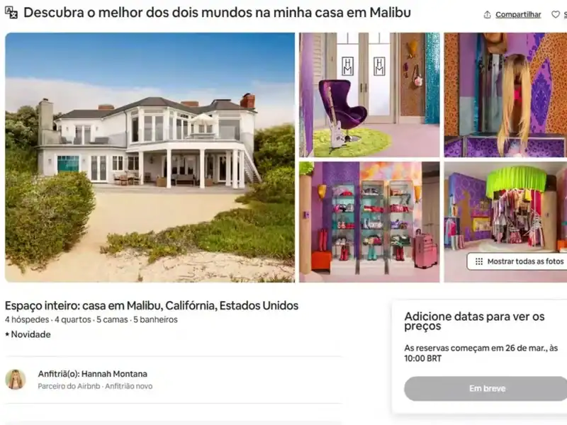 As celebrações pelos 20 anos da série “Hannah Montana”, da Disney, continuam intensas e de forma imersiva. A famosa residência da personagem de Miley Cyrus, localizada em Malibu, Califórnia, EUA, estará disponível para locação por curta temporada através de uma plataforma imobiliária.