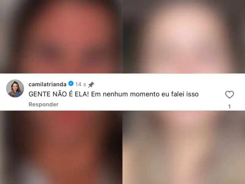 Com a pressão jurídica e a repercussão nas redes sociais, Camila Trianda decidiu se manifestar rapidamente. Nos comentários, ela esclareceu: “Gente, não é ela! Em nenhum momento eu falei isso”.