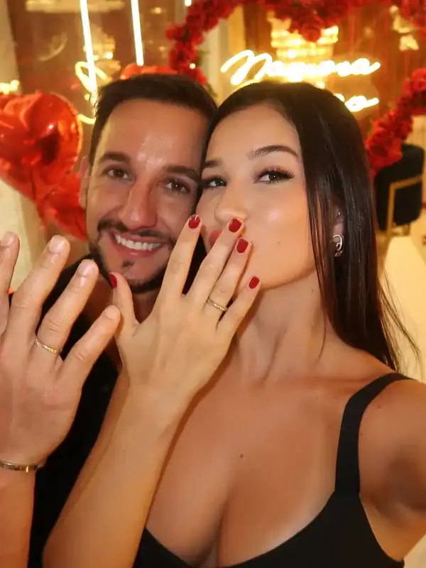 Duda e Mesquita se conheceram durante o reality show “A Fazenda 17”. Em dezembro do ano passado, o ex-peão pediu Duda em namoro, com direito a quarto decorado e alianças.