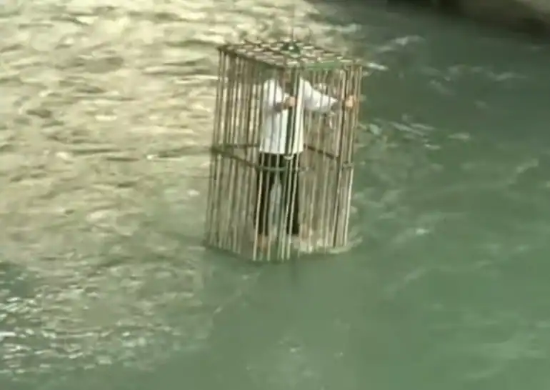 A cerimônia tem origem em uma prática medieval aplicada entre os séculos XIV e XVII, quando pessoas acusadas de blasfêmia eram colocadas em uma espécie de jaula e submersas no rio. Atualmente, o evento ganhou caráter simbólico e satírico.